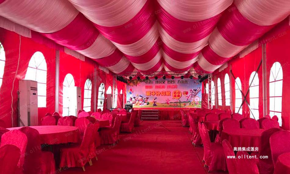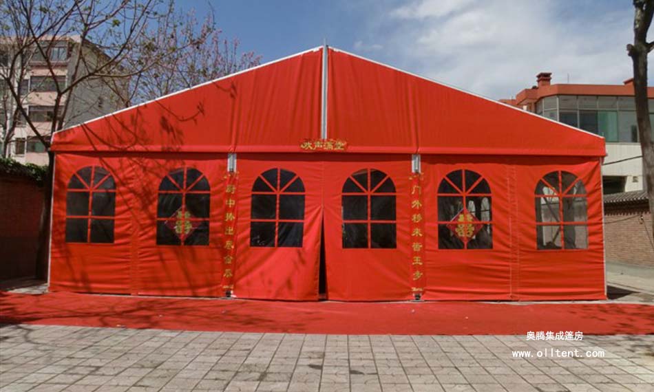 奧騰篷房在婚禮篷房生產(chǎn)搭建方面有足夠的經(jīng)驗,有多種婚禮篷房產(chǎn)品供應,如人字頂篷房、歐式尖頂篷房、透明婚宴篷房等等,都適用于婚禮婚慶儀式,另外還有中式、歐式、田園、浪漫等風格可選。尺寸方面跨度可以從3-50m不等,長度可按3或5m的倍數(shù)無限延伸,不論是多大規(guī)模的婚慶篷房都可以滿足。在場地上的選擇和婚禮布置也是相當自由,戶外婚慶篷房在搭建上不受地形限制,所以你完全可以將婚禮選擇在浪漫的海邊沙灘、舒適自然的草地上舉行,并結合周邊環(huán)境和自己的想法隨意布置婚禮!