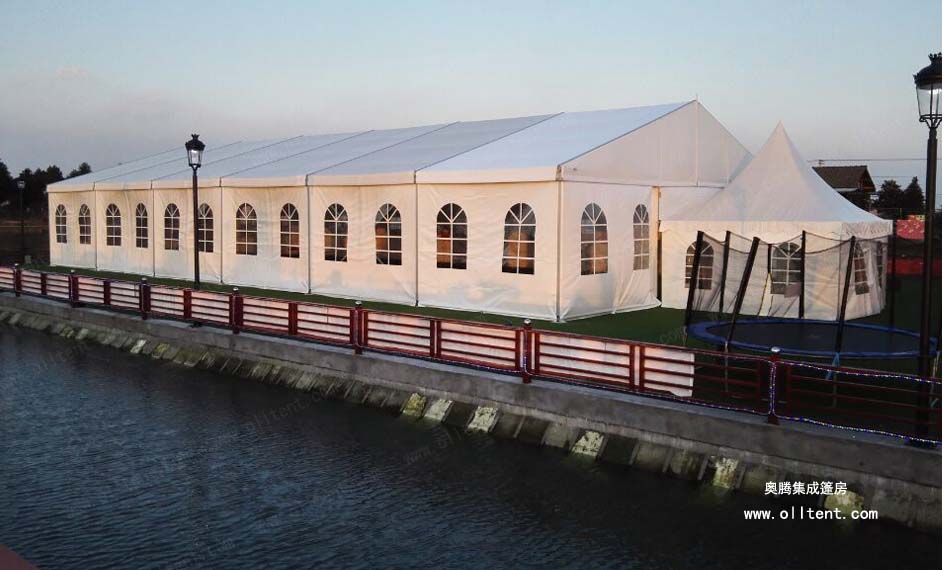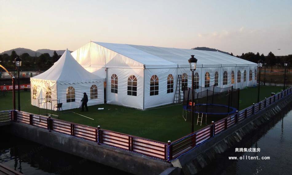 婚禮篷房是一種模塊化建筑,在出貨之前我們會試搭,所以用我們的篷房舉行婚禮宴會是安全的。同時,它也是很有成本效益的,鋁合金婚禮宴會篷房美觀耐用,框架可以使用15年以上,pvc篷布可以用5-8年。我們還會提供精美的天花布幔、燈光、音響、舞臺、桁架、地毯、空調、地板等配件,讓宴會篷房的功能更強大。