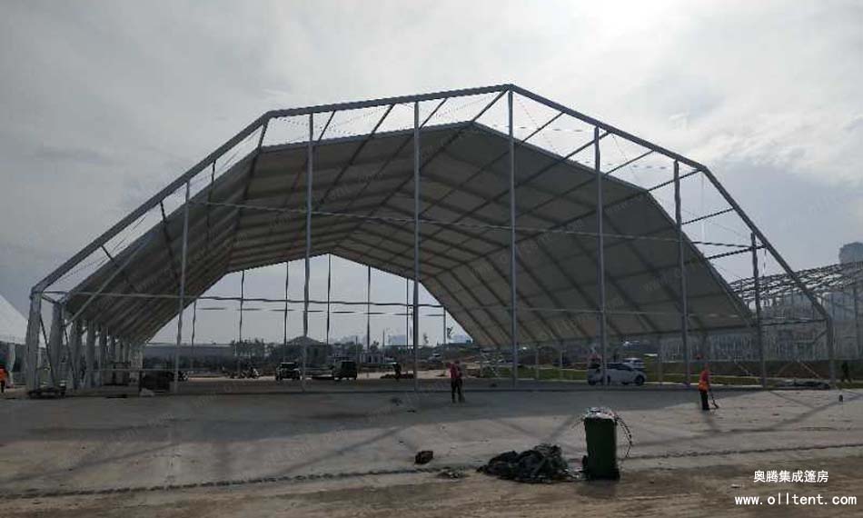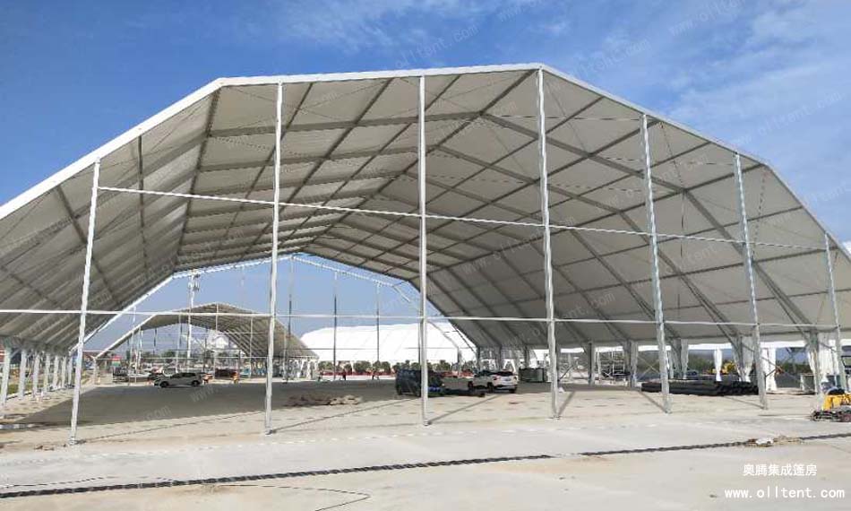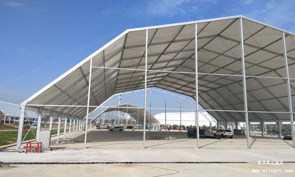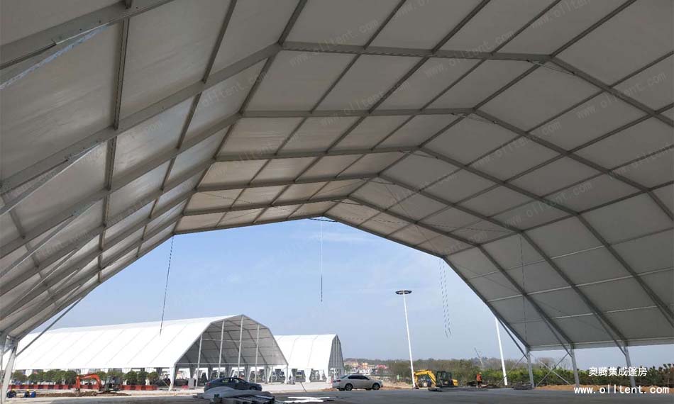 奧騰多拱形篷房的斜梁采用多條鋁合金斜梁拼接而成,并由多邊形而組成,故命名為多拱形篷房。
